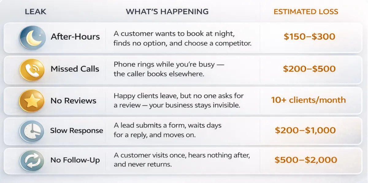 Every gap in your process is a leak and those leaks are costing you hundreds to thousands every month.